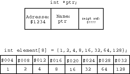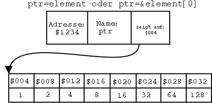 Jetzt kommen wir zu den Zeigern und Arrays. Also Zeigern und Variablen mit Indexfeldern.