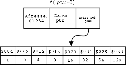 printf("Jetzt zeigt *ptr durch *(ptr+3) auf %d\n",*(ptr+3));