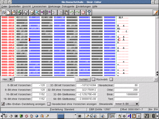 es. Nun besorgen sie sich einen Binär-Editor, und sehen sich unser