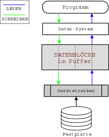 vom Datei-System über den Gerätetreiber von der Festplatte angefordert.